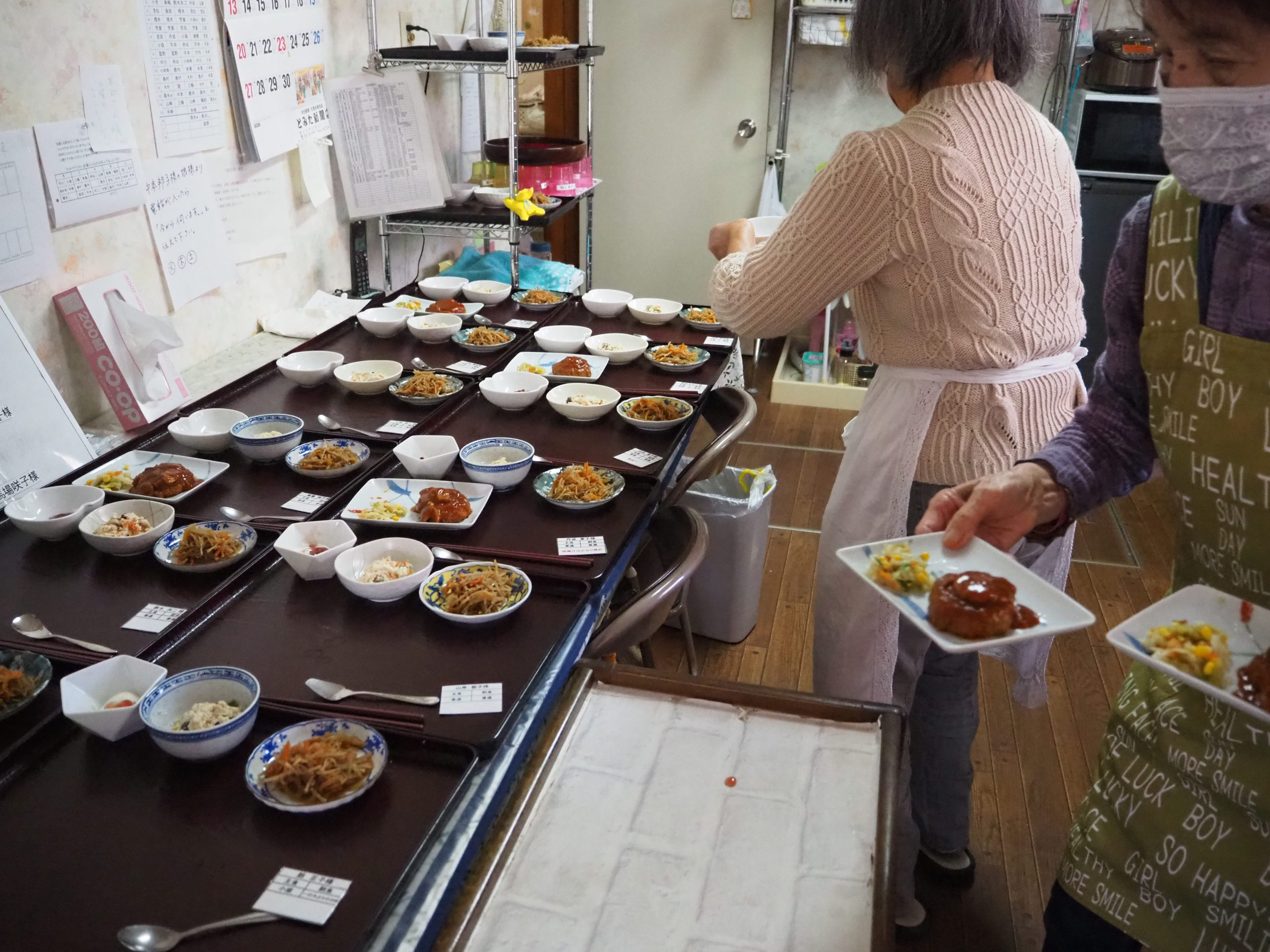 管理栄養士がいるわけでもなく、主婦が作る昼食ですが、ベテラン主婦ばかり。利用者様の口の状態、アレルギー、好き嫌い等のご要望にお答えしてカロリー控えめや、柔らかい食事、刻み食等、食形態にもお答えしています。主食はお肉か魚ですがそれもダメ1という方には主婦シェフがお答えして、皆さんと一緒に美味しくお食事を取って頂いております。